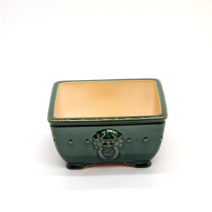 – Đặc điểm: Chậu có hình chữ nhật dáng thấp, đáy chậu có lỗ thoát nước, chậu có thiết kế đơn giản, họ tiết được chạm khắc nổi, màu xanh đẹp mắt hài hòa