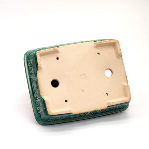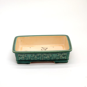 – Đặc điểm: Chậu có hình chữ nhật dáng thấp, đáy chậu có lỗ thoát nước, chậu có thiết kế đơn giản, họa tiết chữ Hán được chạm khắc nổi, màu xanh đẹp mắt hài hòa