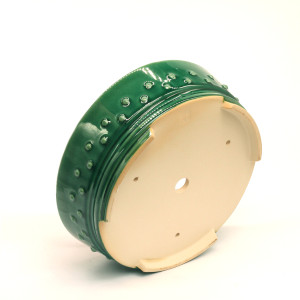 – Đặc điểm: Chậu được thiết kế hình tròn, dáng thấp, đáy chậu có lỗ thoát nước, chậu có màu xanh đẹp mắt hài hòa được chạm khắc nổi hình giọt nước xung quanh chậu