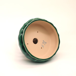 – Đặc điểm: Chậu được thiết kế hình tròn, dáng thấp, đáy chậu có lỗ thoát nước, chậu có màu xanh đẹp mắt hài hòa được chạm khắc nổi hình giọt nước xung quanh chậu