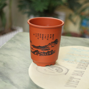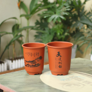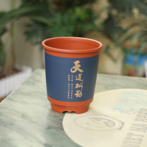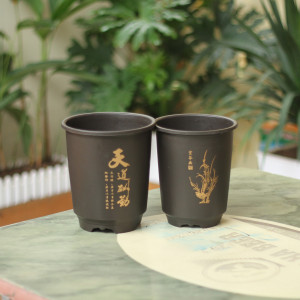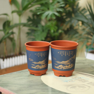 – Đặc điểm: Chậu có dáng hình trụ, đáy chậu có lỗ thoát nước,thân chậu in các hình nổi rõ nét, đặc sắc như Tùng, Trúc, Cúc , Mai, chữ Hán ngữ,