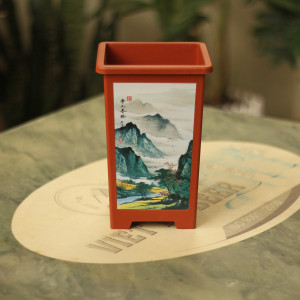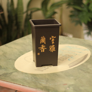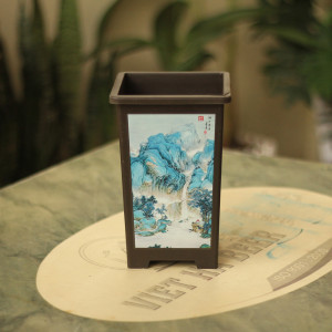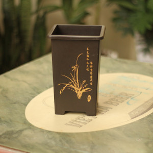 – Đặc điểm: Chậu có dáng hình chữ nhật, đáy chậu có lỗ thoát nướ,thân chậu in các hình nổi rõ nét, đặc sắc như Tùng, Trúc, Cúc , Mai, chữ Hán ngữ, núi……
