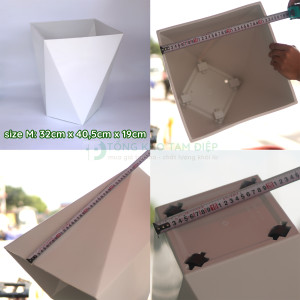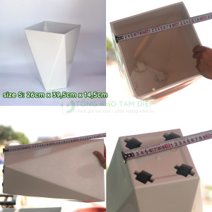 Chậu có màu trắng giả sứ, kiểu dáng kim cương miệng vuông vô cùng mới lạ và sang trọng vừa góp phần tô điểm cho không gian xanh của bạn thêm phần xinh xắn vừa tôn lên được vẻ đẹp của hoa cây cảnh mà bạn trồng.