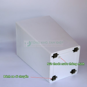 Chậu có thiết kế vô cùng thông minh bởi dưới đáy chậu có 4 bánh xe lăn giúp cho bạn dễ dàng di chuyển vị trí của chậu để dọn dẹp hoặc thay đổi vị trí của cây mà không cần phải bê vác hay nhờ người khác khiêng cùng. Cùng với đó lỗ thoát nước dưới đáy chậu có nút cao su để có thể mở ra đóng vào tùy nhu cầu của bạn