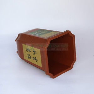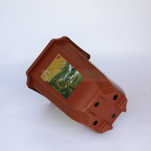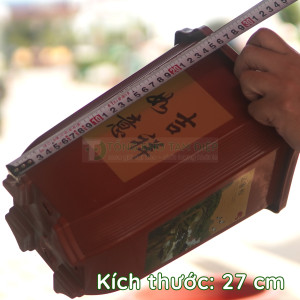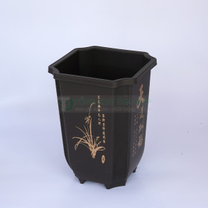 Chậu có 2 màu đen và đỏ gạch, trên thân chậu màu đen được in các họa tiết vô cùng tinh xảo như câu thơ bằng chữ Hán ngữ, hoa lan,.. màu đỏ có các họa tiết là tranh sơn thủy, chim hạc bay, thơ chữ Hán,… mang rất nhiều ý nghĩa tinh tế khác nhau. Dưới đáy chậu có kèm theo 4 chân đế cũng lỗ thoát nước rất tiện lợi vừa giúp cây không bị úng nước và cũng có thể dễ dàng vệ sinh tránh đất bị dây ra mặt sàn.