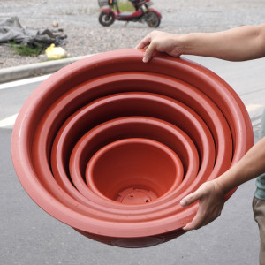 – Đặc điểm: Chậu dáng tròn truyền thống, đáy chậu có lỗ thoát nước, màu sắc chậu tươi sáng, dễ vệ sinh, bề mặt chậu in hình nổi đặc sắc khác nhau.