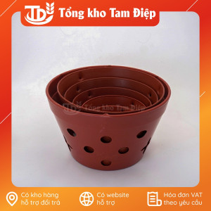 - Các chậu đều có lỗ thoát nước ở đáy và xung quanh giúp nước không bị ứ đọng khi tưới, đồng thời giúp rễ cây dễ dàng hô hấp, tạo môi trường sống khỏe mạnh nhằm kéo dài tuổi thọ cho cây. Sự thông thoáng của chậu là yếu tố quan trọng trong quá trình trồng hoa lan, nhằm giúp hoa phát triển nhanh, giảm thiểu sâu bệnh và tác động đến quá trình nở hoa.